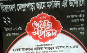 হিয়াবরণ মোল্লাপাড়া এলাকায় ওয়াজ মাহফিল শুক্রবার