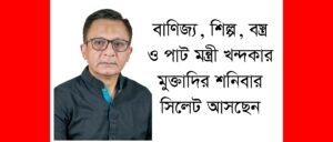 বাণিজ্য, শিল্প, বস্ত্র ও পাট মন্ত্রী খন্দকার মুক্তাদির শনিবার সিলেট আসছেন